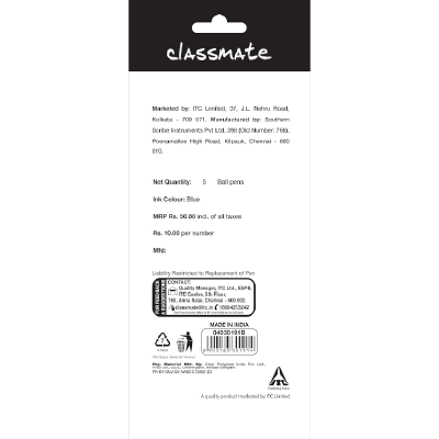 This pack of 5 blue ballpoint pens is meticulously crafted to offer smooth, fast writing, making them an indispensable tool for students and professionals alike. Each pen is designed to provide an exceptional writing experience, ensuring that you can jot down notes, draft essays, and take tests with ease and precision. The high-quality ink flows consistently, delivering crisp and clear lines every time you write. The ergonomic design of Classmate Octane Ball Pens is one of their standout features. The pens are designed with a comfortable grip that makes extended writing sessions effortless. The grip is specifically designed to fit snugly in your hand, providing a secure and steady hold that enhances your writing accuracy and speed. This makes Classmate Octane Ball Pens the perfect choice for students who need reliable writing instruments for their academic tasks. Beyond their functional benefits, Classmate Octane Ball Pens are also visually appealing. The sleek and modern design adds a touch of sophistication to your stationery collection. The vibrant blue ink stands out on the page, making your notes and documents easy to read. Each pen is built to the highest standards of quality, ensuring that they are durable and long-lasting. The sturdy construction means that these pens can withstand the rigors of daily use, making them a dependable companion for all your writing needs. Enjoy the perfect combination of style, comfort, and performance with Classmate pens that are built to deliver outstanding results every time you put pen to paper.