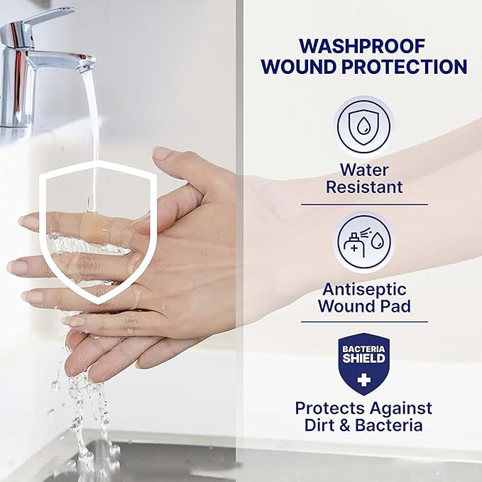 • LONG LASTING: These flexible adhesive bandages stay on for up to 24 hours and feature a cushioned pad that doesn’t stick to the wound and allow breathable space for healing.