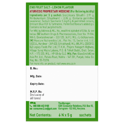 Acidity can be associated with a range of issues like stomach discomfort, bloating, pain, acid reflux, and heartburn. Thankfully, relief from acidity can arrive fast with ENO. Eno is India’s No 1 Antacid Brand. Eno Antacid/Digestive provides fast relief from acidity & gets to work in 6 secs by neutralizing excess stomach acid upon contact. Based on lab studies, ENO powder gets to work faster than leading liquid and tablet antacids. Nothing is better for fast relief from acidity and heartburn than ENO. Home remedies take time, Fight Acidity fast with ENO. ENO fights heartburn fast, so that without heartburn you can comfortably fall asleep. ENO works on 6 symptoms of Acidity and Heartburn. These include: 1. Burning sensation in chest, 2. Burning sensation in stomach, 3. Burning sensation in throat, 4. Sour taste in mouth, 5. Epigastric (upper abdomen) discomfort and 6. Bitter taste in mouth. Eno is available in 100gm Bottles and 5gm sachets which come in a handy box of 6 sachets. ENO comes in different flavors & gives you fast relief. Try Eno Regular, Eno Orange, and Eno Lemon. Fight Acidity Fast with ENO. Clinically proven instant action. Try ENO for fast and effective relief from Acidity. Jiyo life non stop. Buy Now!