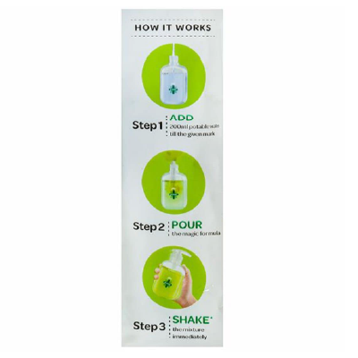 Easy to make: add 200ml clean water + pour handwash refill powder in the bottle + shake & with that, you get one full bottle of handwash