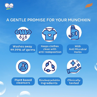 Babies are more susceptible to illnesses, and protecting them from germs is the topmost priority for parents. Himalaya Germ Free Baby Laundry Wash is specially formulated to effectively wash away 99.99% of germs, removing stains and unpleasant odor from soiled clothes, bibs, bedding, and towels. The strong antiredeposition action helps prevent dirt from being redeposited and keeps your baby’s clothes, bibs, bedding, and towels fresh post wash. This cleanser with naturally derived cleansing agents and biodegradable ingredients keeps baby’s clothes soft and is safe for the environment too.