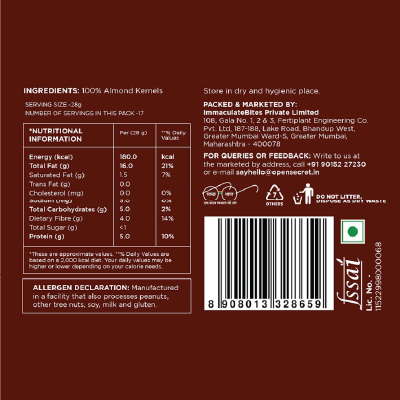 Quality Guaranteed Freshness: Hygienically packed in an FSSAI-compliant facility, our almonds come in a resealable bag, maintaining their crunch and ensuring you stay energized throughout the day.