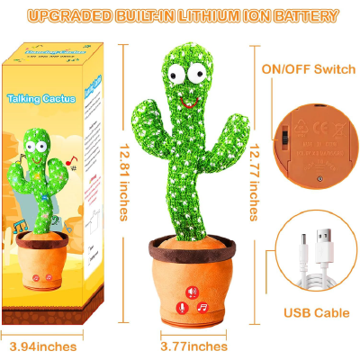 Fun and lovely cactus plush toys, can dance, sing, move. It's good for early education.;Cheerful music and dancing are great for creating a pleasant ambience and for parties.; Great gift, cactus plush toys are the best holiday and birthday gifts for children. Adults can also decompress.