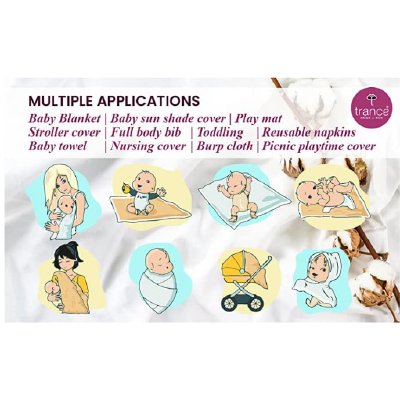 Multiple Applications: Trance Malmal Cotton Swaddles Can Be Used for Wrapping the Newborn, as a Baby Blanket, Sun Shade Cover, Play Mat, Stroller Cover, Full Body Bib, Toddling, Reusable Napkins, Baby Towel, Nursing Cover, Burp Cloth, Picnic Playtime Cover, and More.