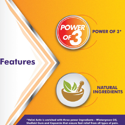 Volini Activ is Enriched with three power ingredients - GHANDPURA TEL, SHALLAKI GUM & CAPSAICIN that ensure fast relief from all types of pain