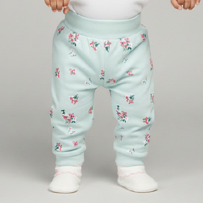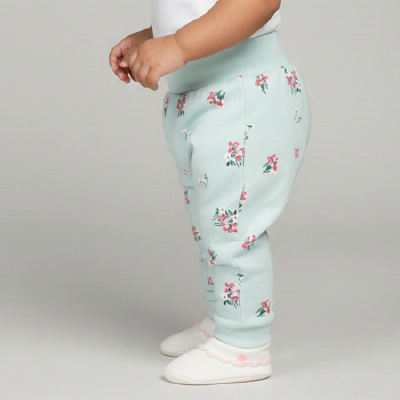 These Light Mint Green Infant Pyjamas are crafted in breathable 100% cotton for ultimate comfort. Adorned with a charming floral print, they feature an elastic waistband and ribbed cuffs for a secure fit. Perfect for cozy naps or playtime. Pair with a soft cotton tee for a complete look.